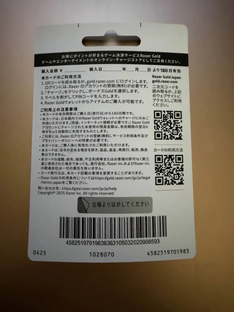 実際に、コンビニでRazer Goldを購入してみました。